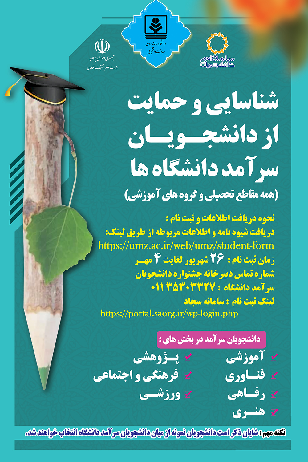 شناسایی و حمایت از دانشجویان سرآمد دانشگاهها - دانشگاه مازندران