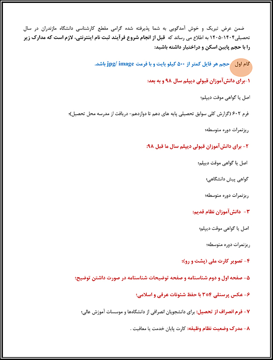اطلاعیه شماره 2 دانشگاه مازندران درخصوص مدارک مورد نیاز ثبتنام پذیرفتهشدگان آزمون سراسری سال 1404 - دانشگاه مازندران