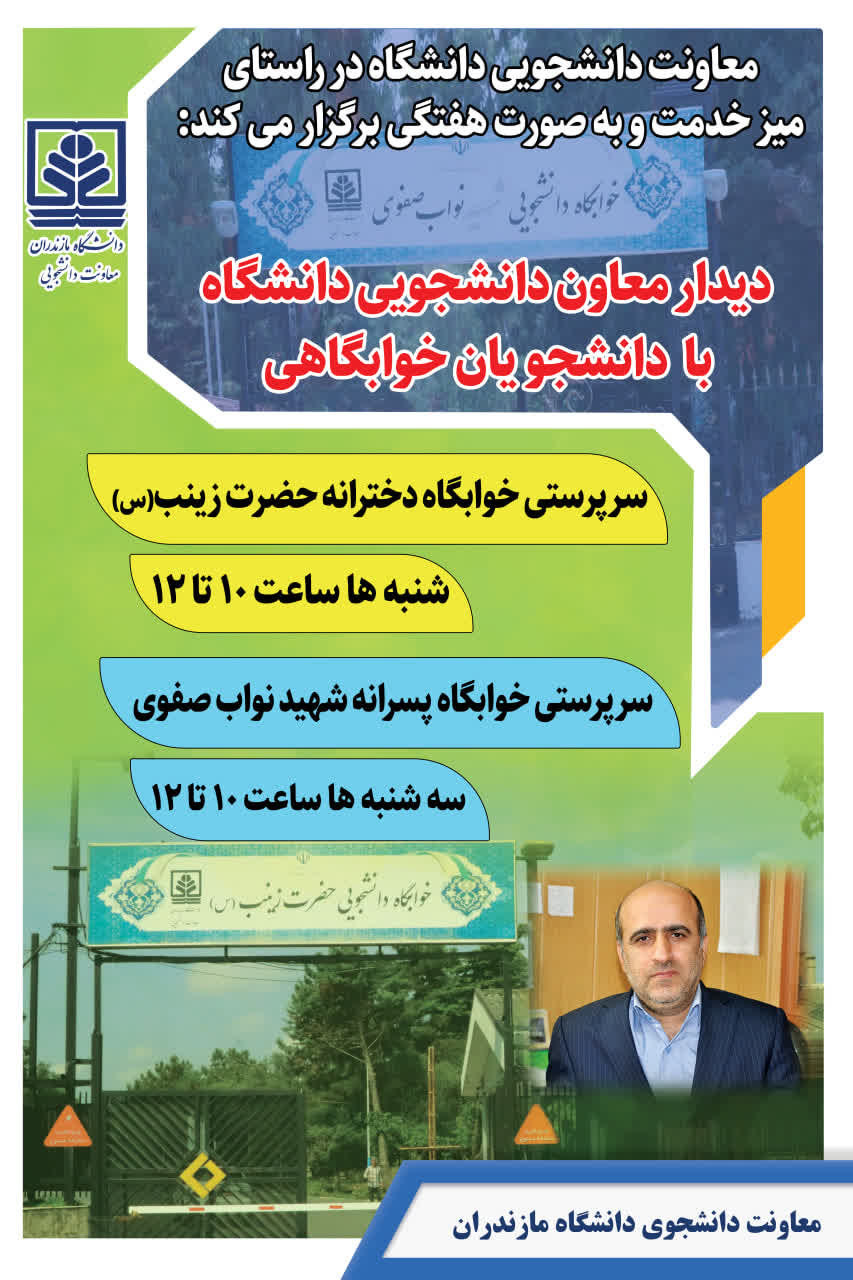برنامه زمانبندی دیدار هفتگی معاون دانشجویی دانشگاه با دانشجویان سراییدانشجویی