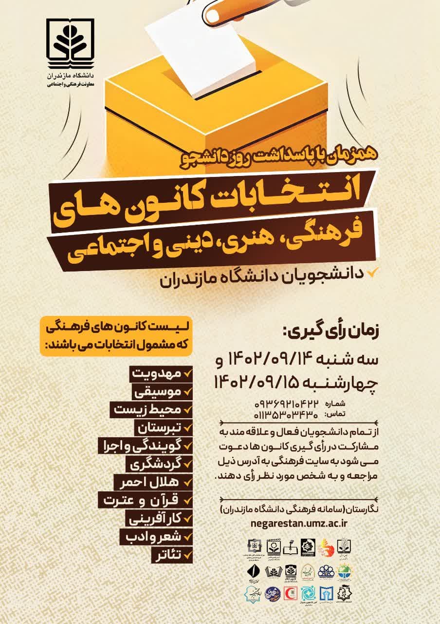 انتخابات کانونهای فرهنگی، هنری، دینی واجتماعی دانشجویان دانشگاه مازندران - دانشگاه مازندران