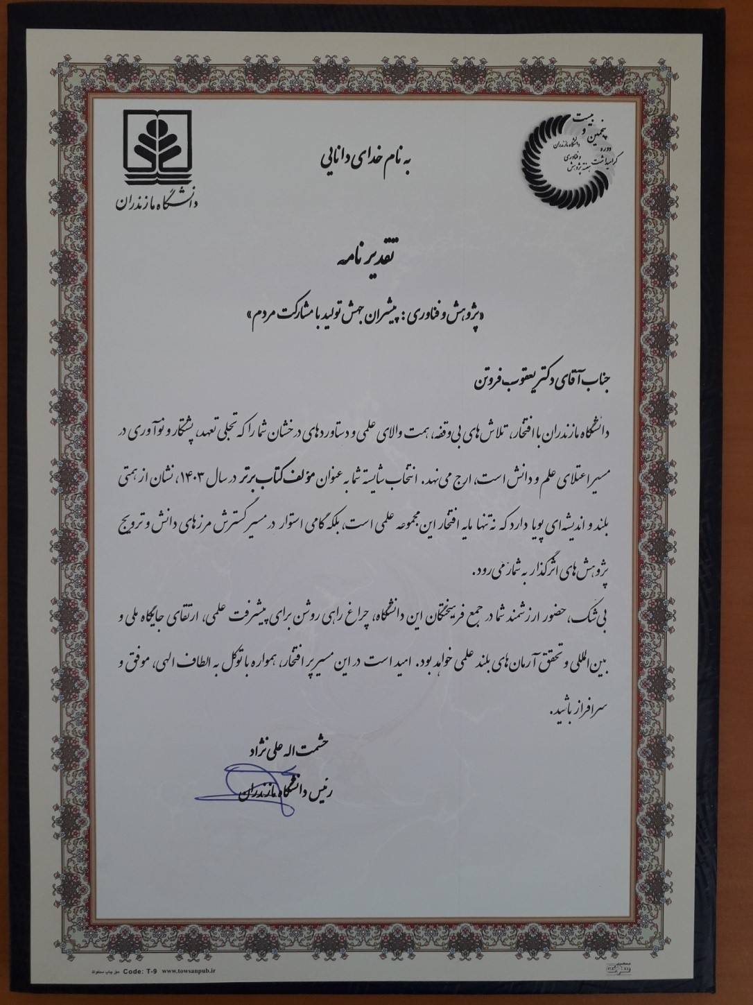 انتخاب کتاب عضو هیات علمی دانشگاه مازندران بهعنوان کتاب برگزیده - دانشگاه مازندران