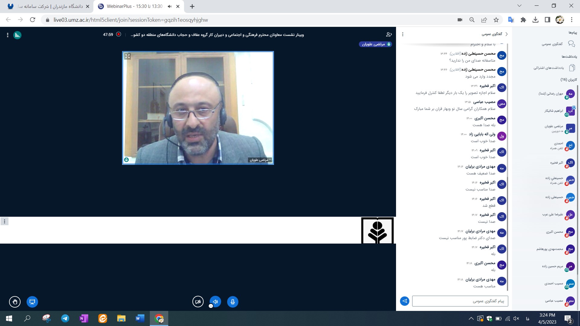 به گزارش روابط عمومی دانشگاه مازندران، نخستین نشست شورای هماهنگی معاونان فرهنگی و اجتماعی دانشگاهها و موسسات آموزش عالی منطقه دو کشور در سال 1402 به صورت مجازی و با دستور کار"عفاف و حجاب در دانشگاهها" به ریاست دکتر مرتضی علویان معاون فرهنگی و اجتماعی دانشگاه مازندران برگزار گردید.