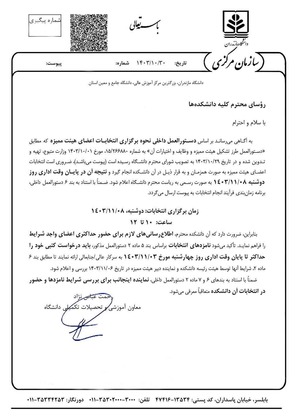 برگزاری انتخابات دوره سیزدهم هیات ممیزه دانشگاه - دانشگاه مازندران