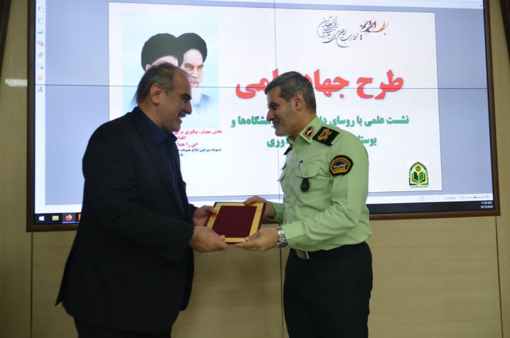 در انتهای نشست، دکتر علینژاد با اهدای لوح تقدیر و هدیه نفیس از سردار مفخمی تقدیر به عمل آورد. همچنین روسای دانشگاههای استان، ضمن بازدید بخشهای مختلف فرماندهی انتظامی استان، از اقدامات و فعالیتهای این نهاد آگاه شدند.