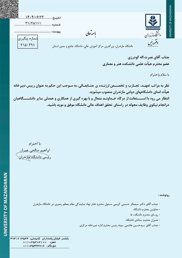 رییس دبیرخانه هیات امنای دانشگاههای دولتی مازندران منصوب شد - دانشگاه مازندران