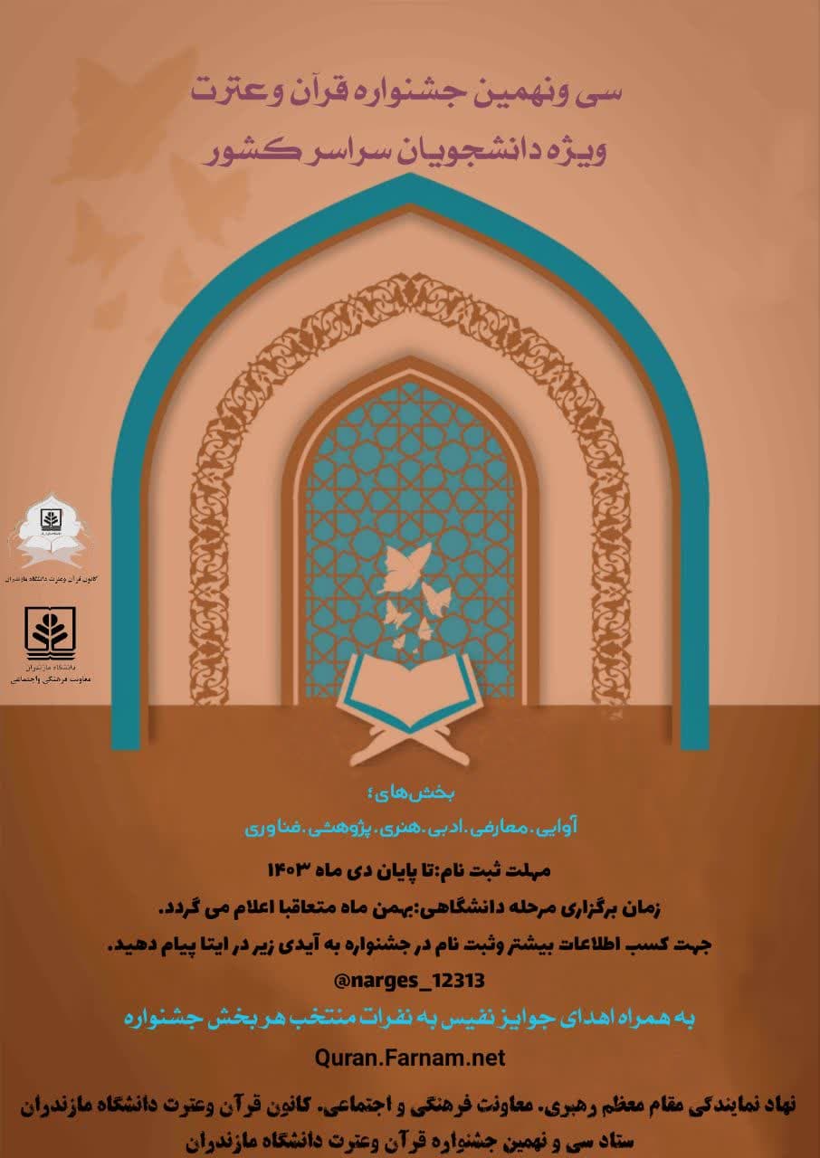 سیونهمین جشنواره قرآن و عترت ویژه دانشجویان سراسر کشور - دانشگاه مازندران