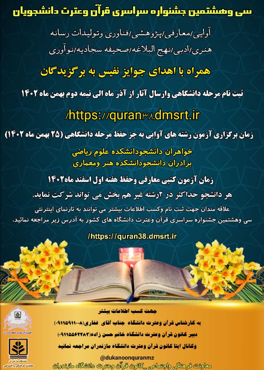 🌸مسابقات سی و هشتمین جشنواره قرآن وعترت دانشجویان سراسر کشور 🌸