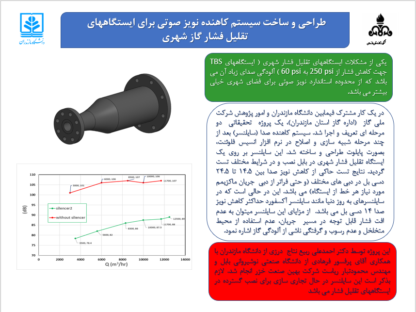 طراحی و ساخت سیستم کاهنده نویز صوتی برای ایستگاههای تقلیل فشار گاز شهری - دانشگاه مازندران
