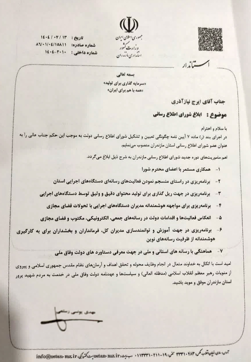 عضو شورای اطلاعرسانی استان مازندران منصوب شد