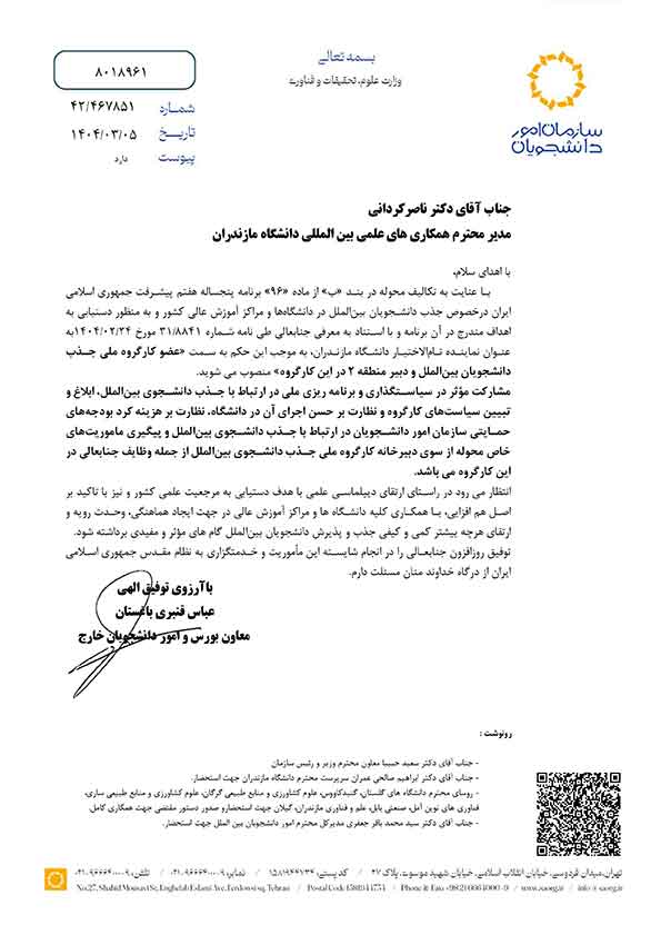 عضو کارگروه ملی جذب دانشجویان بینالملل منصوب شد - دانشگاه مازندران