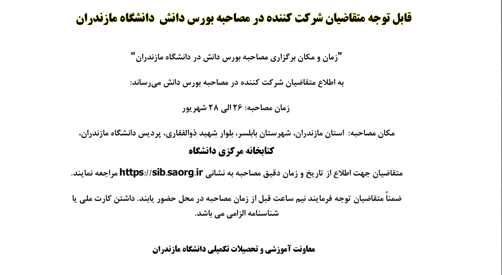 قابل توجه متقاضیان شرکت کننده در مصاحبه بورس دانش دانشگاه مازندران