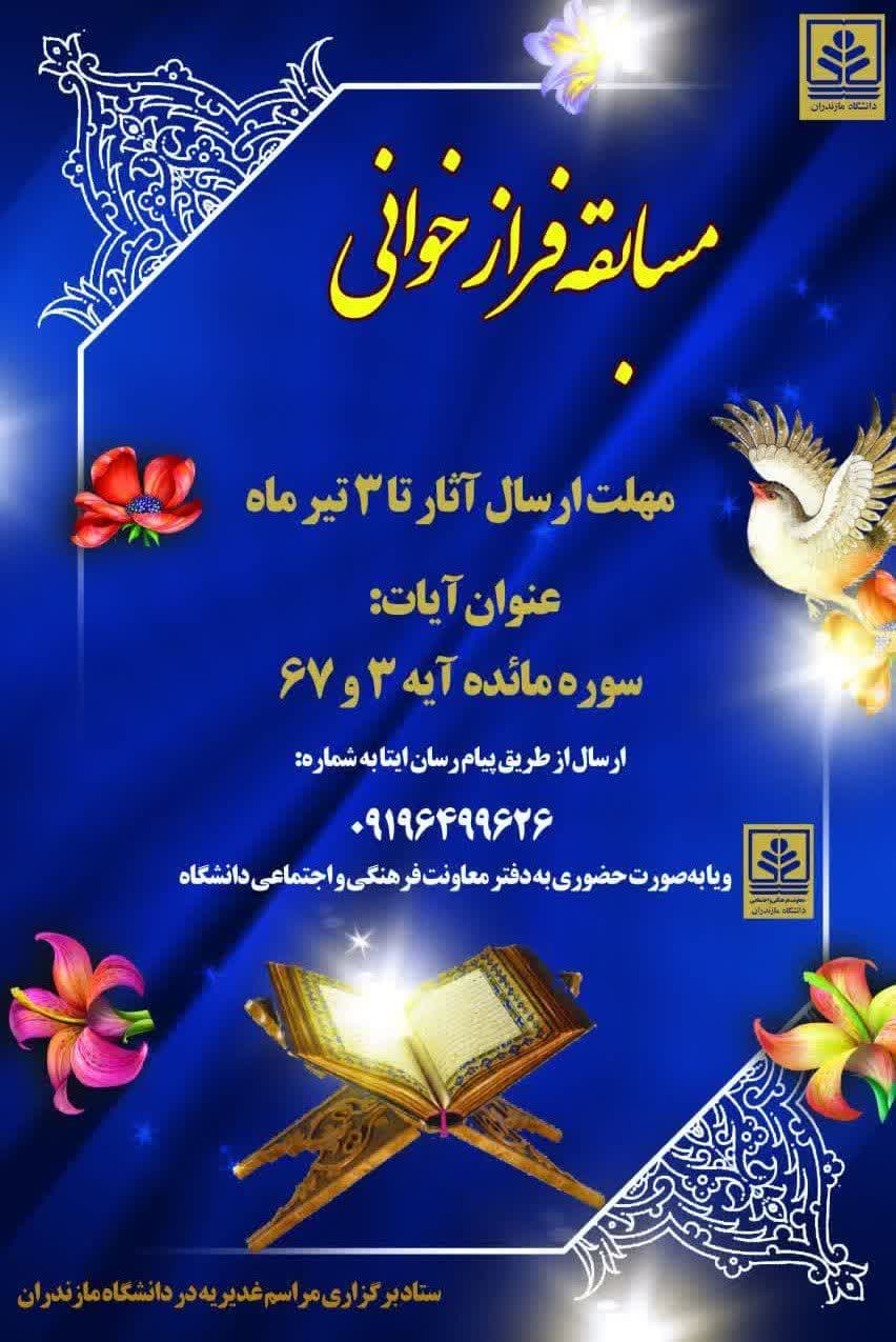 مسابقه فرازخوانی قرآن مجید به مناسبت عیدسعید غدیر - دانشگاه مازندران