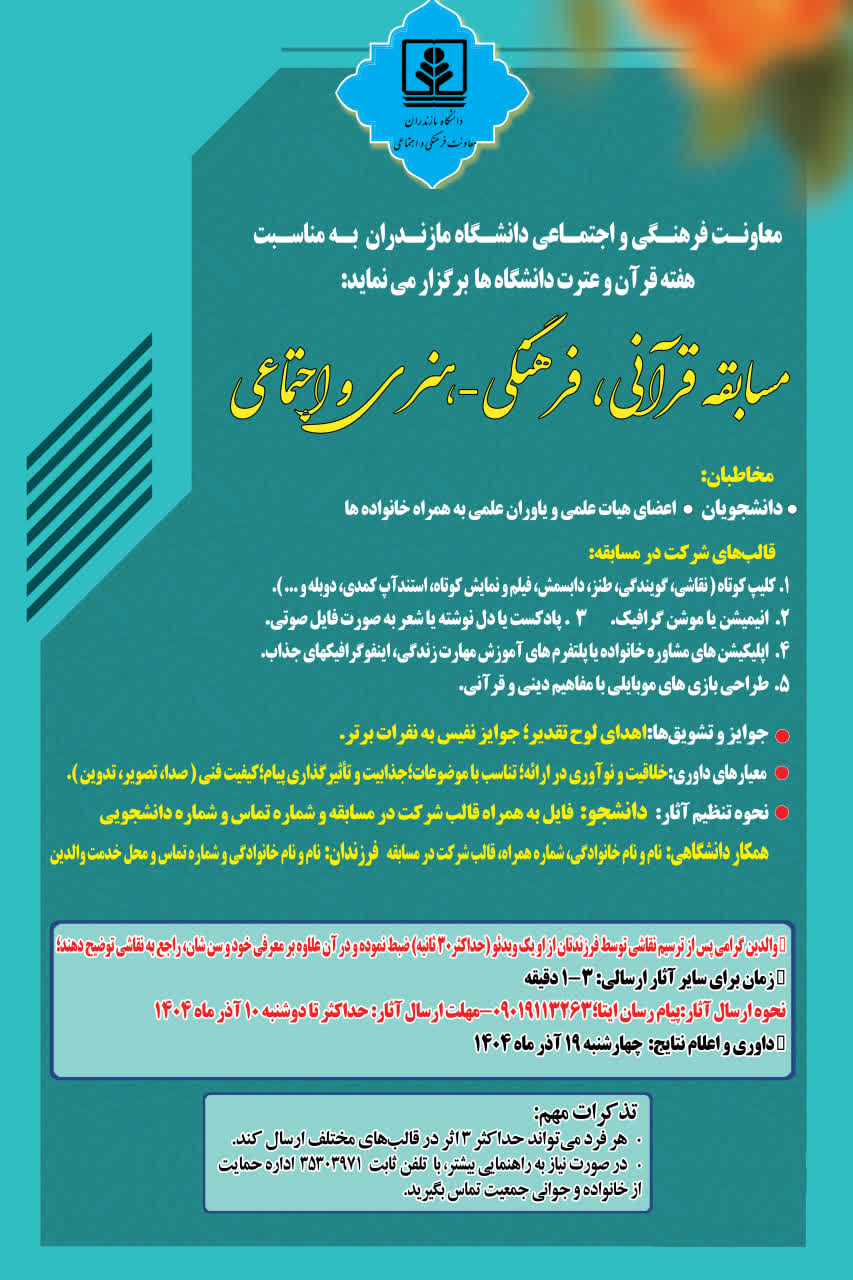مسابقه قرآنی، فرهنگی - هنری و اجتماعی - دانشگاه مازندران