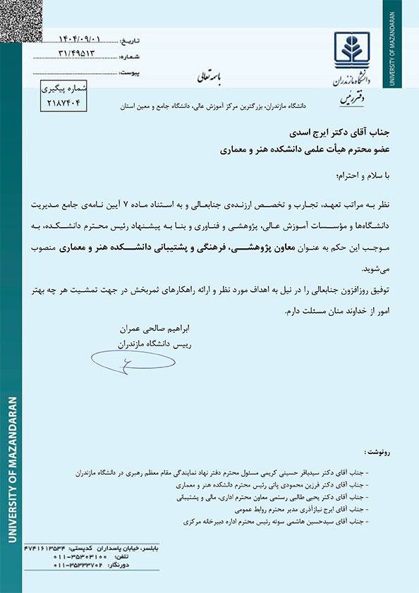 معاونان آموزشی و دانشجویی و معاون پژوهشی و فرهنگی دانشکدههای علوم اقتصادی و اداری و هنر و معماری دانشگاه مازندران منصوب شد - دانشگاه مازندران
