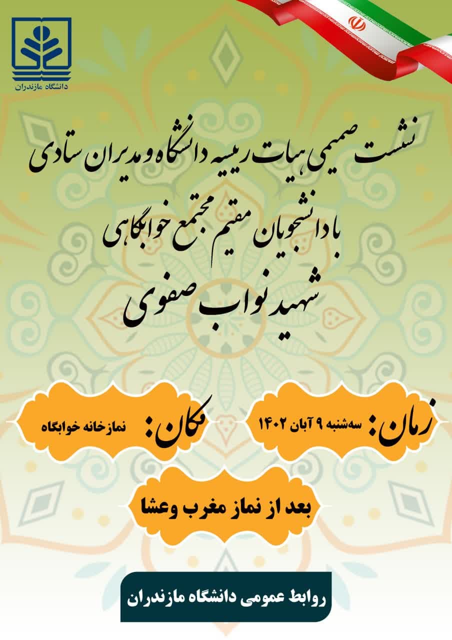 نشست صمیمی هیات رییسه دانشگاه و مدیران ستادی با دانشجویان مقیم مجتمع خوابگاهی شهید نواب صفوی - دانشگاه مازندران