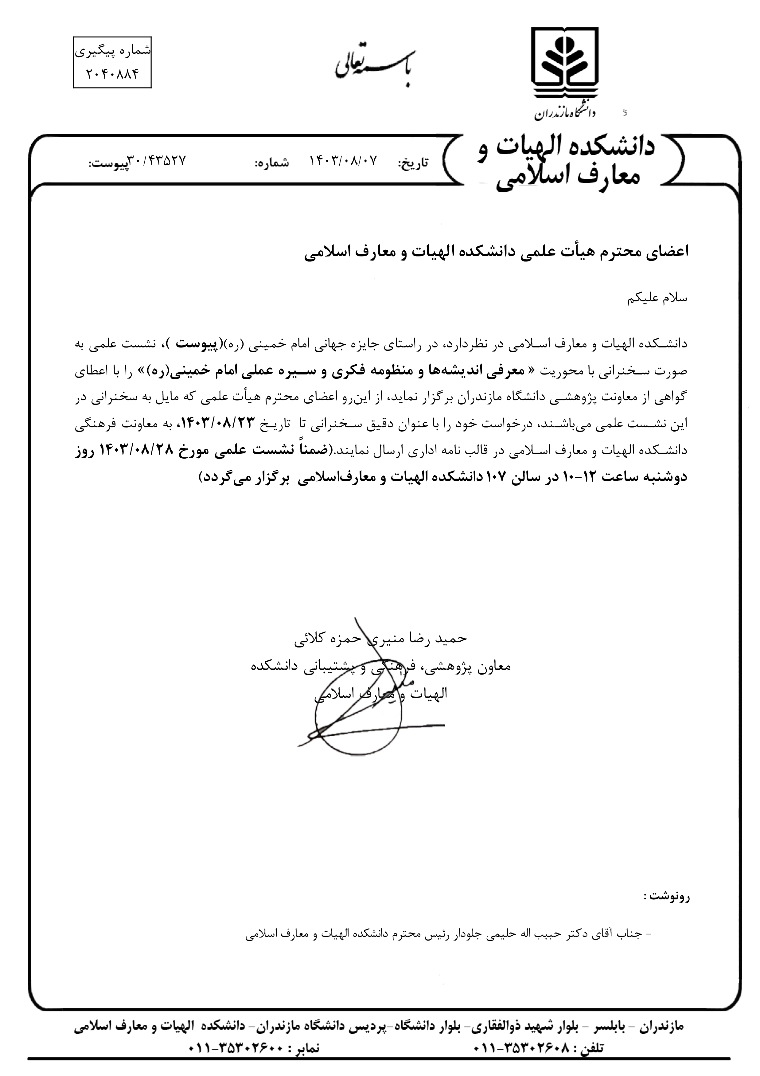 نشست علمی؛ با محوریت « معرفی اندیشهها و منظومه فکري وسـیره عملی امام خمینی(ره)» - دانشگاه مازندران