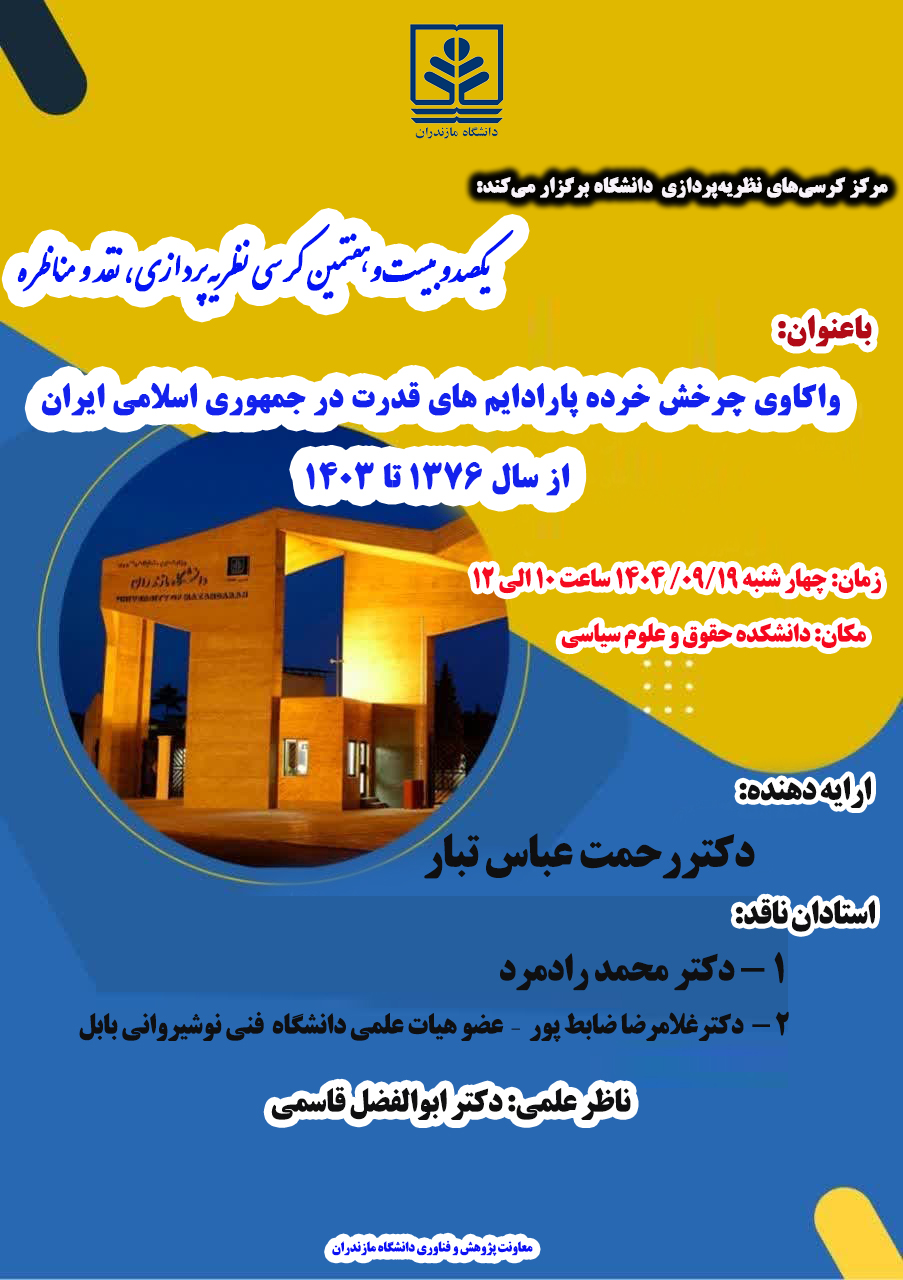 یکصدوبیستوهفتمین نشست کرسیهای ترویجی، عرضه و نقد ایده علمی - دانشگاه مازندران