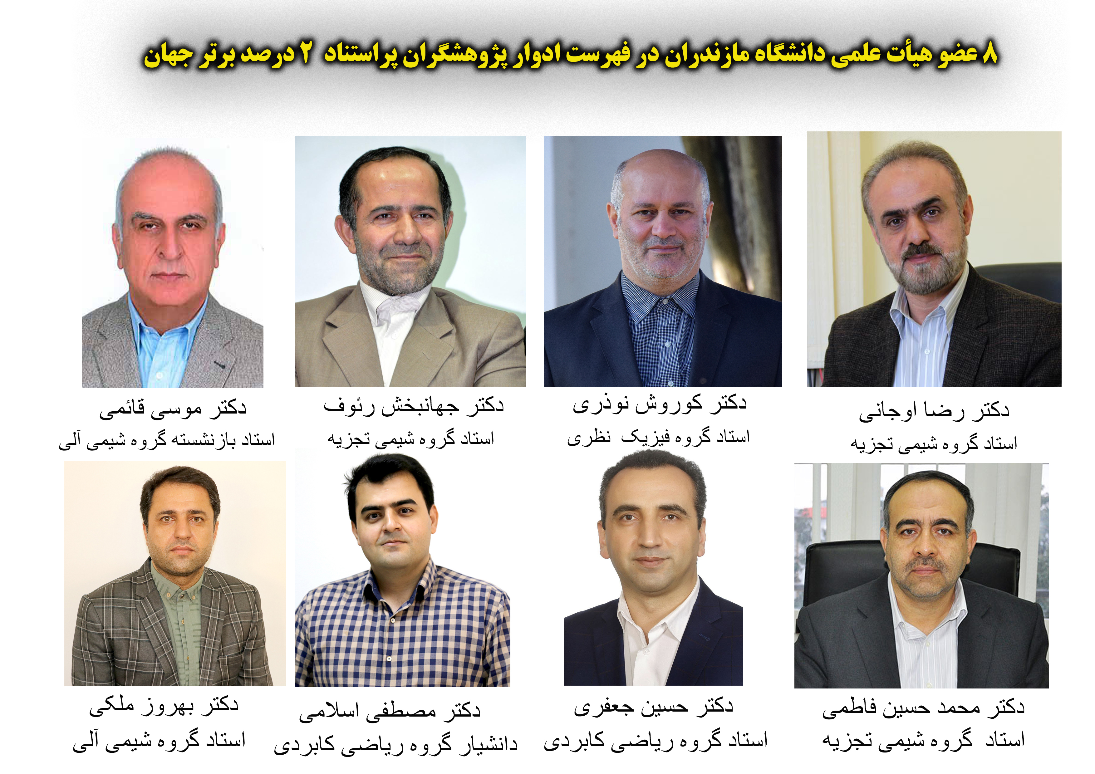 8 عضو هیأت علمی دانشگاه مازندران در فهرست ادوار پژوهشگران پراستناد 2 درصد برتر جهان - دانشگاه مازندران