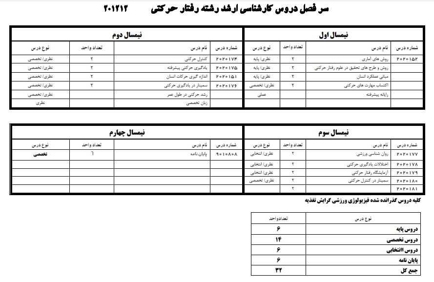 سرفصل دروس و چارت تحصیلی