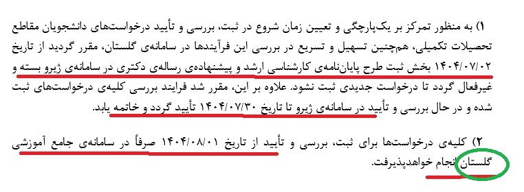 اطلاعیه ثبت پروپوزال در سامانه ژیرو/گلستان
