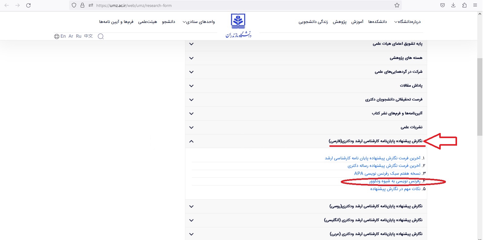 به عنوان مثال درخصوص راهنمای مرجع نویسی به شیوه ونکوور (Vancouver Style) :