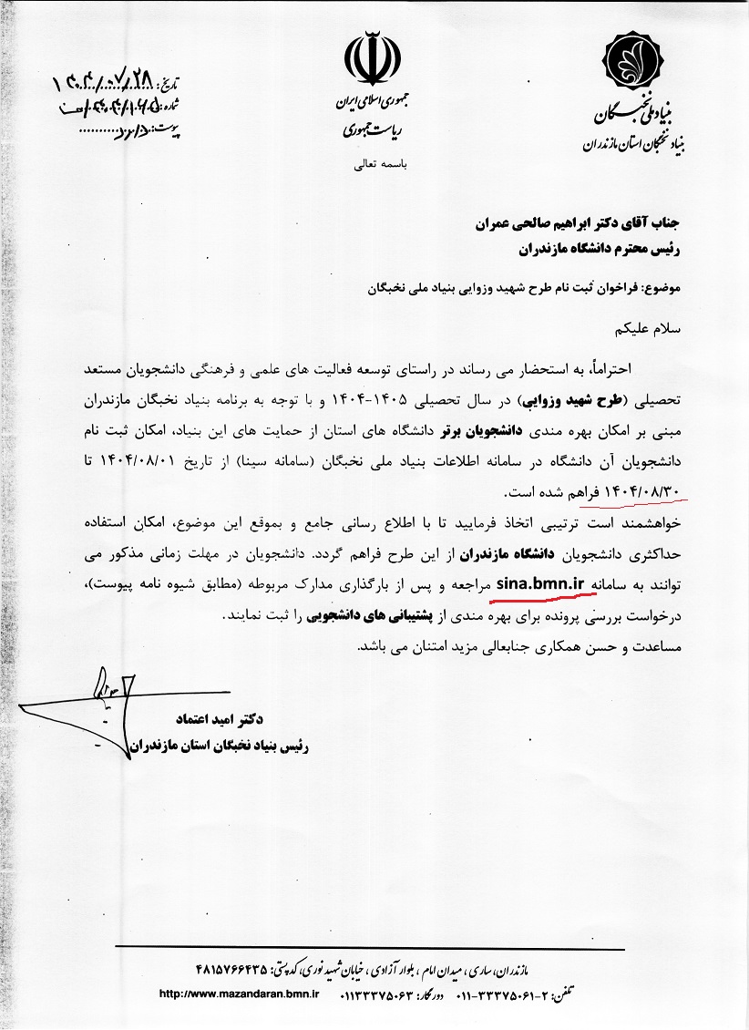 فرخوان طرح شهید وزوایی بنیاد ملی نخبگان