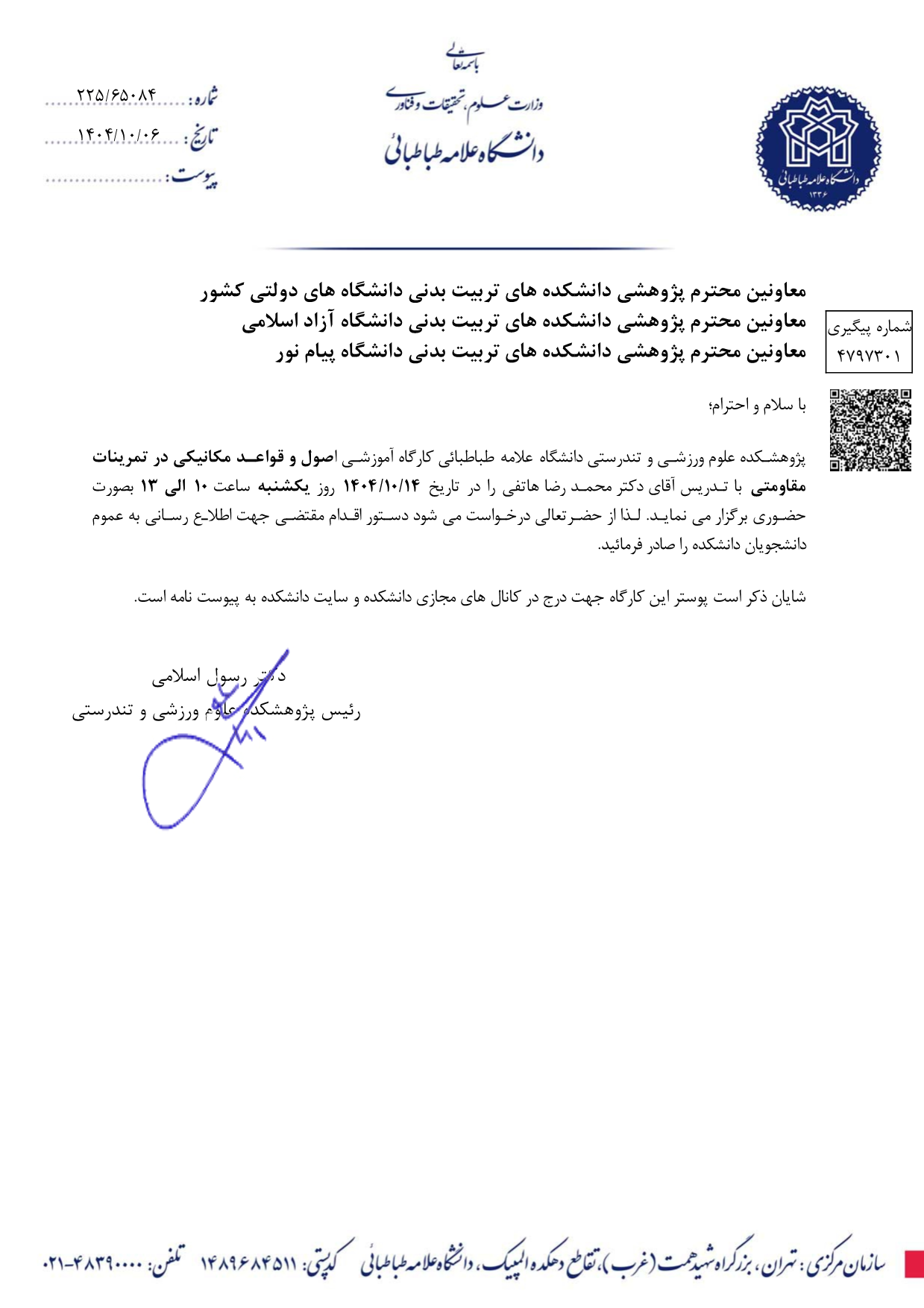 کارگاه اصول و قواعد مکانيکي در تمرينات مقاومتي - دانشکده تربیت بدنی و علوم ورزشی