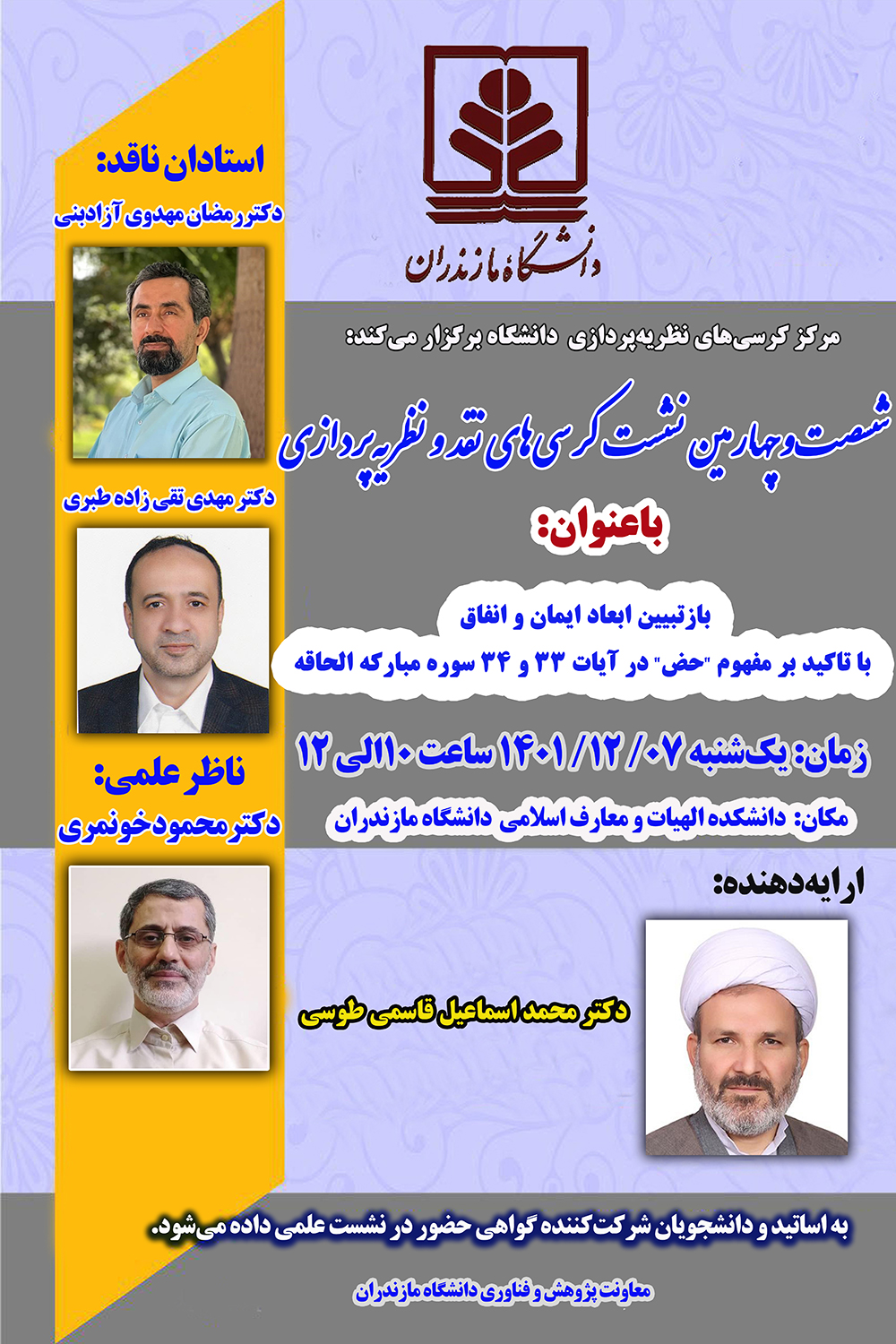 بازتبیین ابعاد ایمان و انفاق با تاکید بر مفهوم (حض ) در آیات 33 و 34 سوره مبارکه الحاقه - مرکز کرسیهای نظریه پرداز