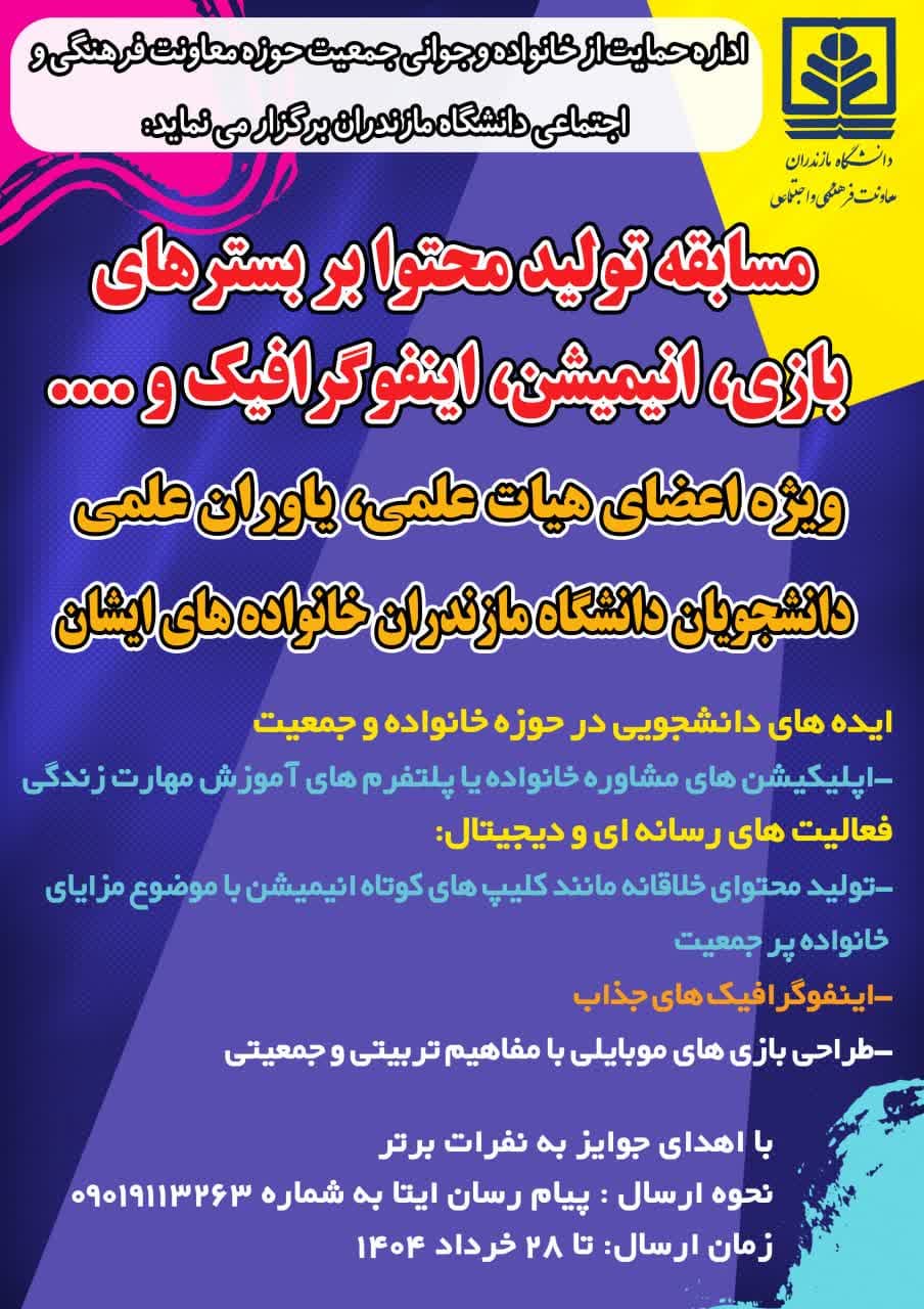 مسابقه تولید محتوا بر بسترهای بازی، انیمیشن، اینفوگرافیک و غیره - دانشگاه مازندران