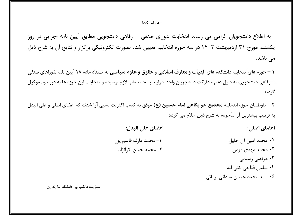 انتخابات شورای صنفی – رفاهی دانشجویی دانشگاه مازندران