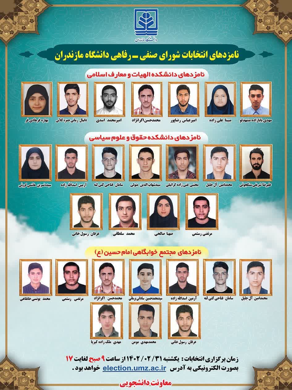 نامزدهای انتخابات شورای صنفی- رفاهی دانشگاه مازندران